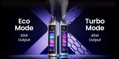 The Elfx Ultra Vape Kit brings smart technology to your fingertips with its intuitive 2.4" full touchscreen display, offering smartphone-like controls for a seamless vaping experience. Whether you prefer MTL or DTL vaping, this sleek and powerful device adapts to your needs with adjustable power ranging from 5W to 45W. With a robust 1500mAh battery, the Elfx Ultra delivers up to 4 days of uninterrupted use, and features ECO and TURBO modes to optimise performance or extend battery life. Connect to the Smart Insights App for advanced usage tracking, settings control, and real-time data.